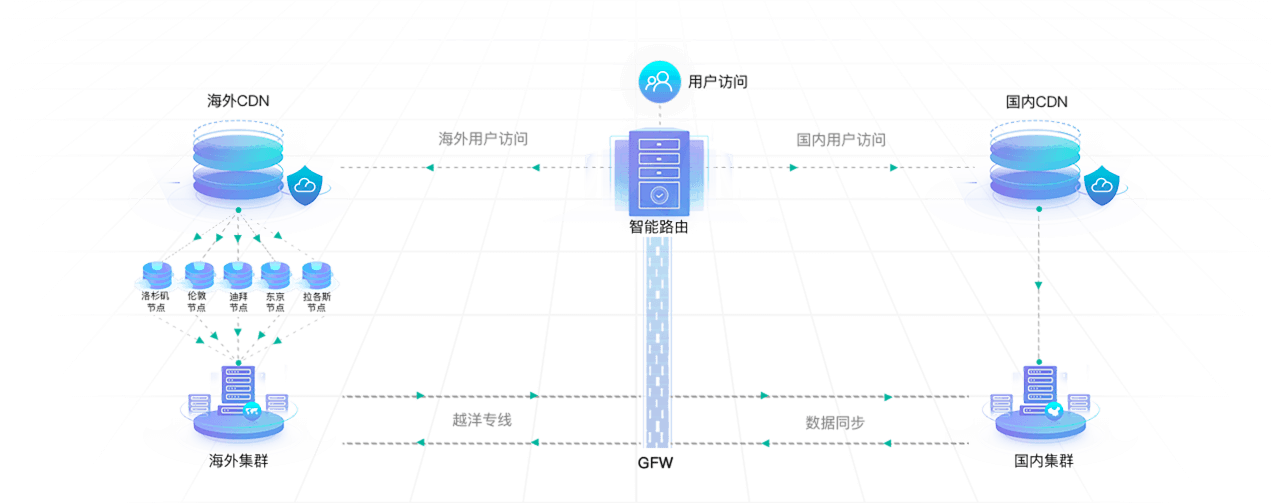 国内+海外双集群、智能路由、专线传输,保障全球访问速度